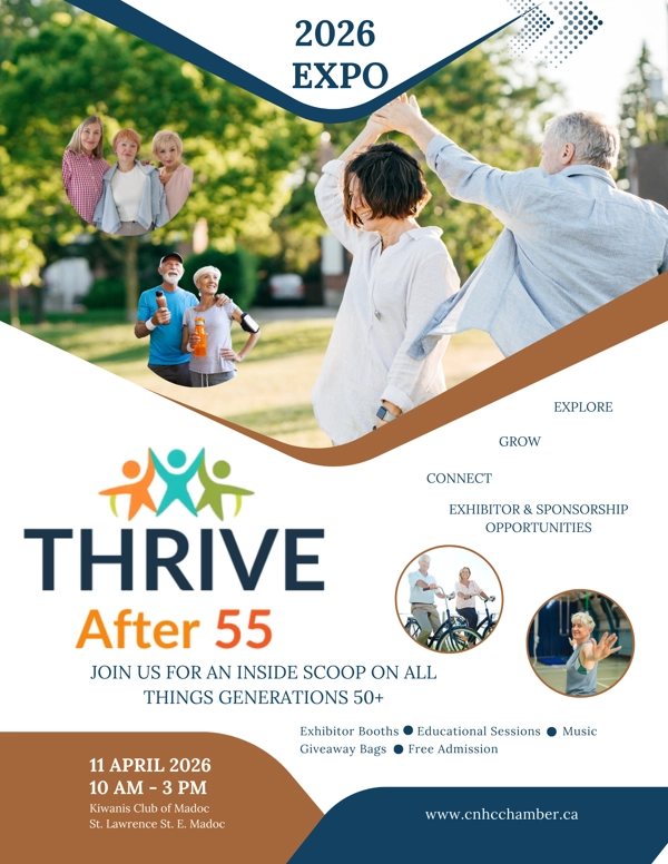 Mindful Journey is excited to be taking part in this year’s “Thrive After 55 Expo” hosted by Central & North Hastings Chamber of Commerce  on Saturday April 11, 2026 from 10am – 3pm at the Kiwanis Club of Madoc.  The Expo offers a full day of fun for the 50+ community with more than 30 trade show booths, information sessions and entertainment featuring an impressive variety of products, services and information for older adults and their families.